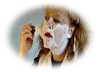 hier wollte ich mir auch mal das gesicht rasieren so wie ein mann.es ist nicht schlecht man kann sich dran gewöhnen.man sieht da auch ein wenig meine brust und muschi.